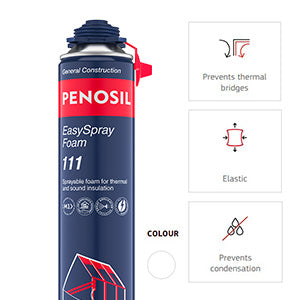 PENOSIL EasySpray Foam 111 is an one-component, ready-to-use sprayable gun foam for sealing and insulating all types of inconvenient places and surfaces, where using traditional insulation materials is difficult. Fast and convenient to use. Special spray applicator is compatible with most foam guns.