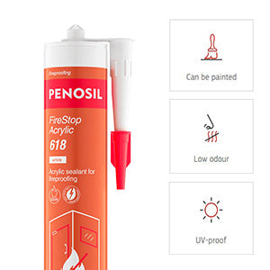 PENOSIL FireStop Acrylic 618 is an acrylic sealant for fireproofing low-expansion construction joints and sealing penetrations in fire-rated structures. Withstands fire up to 4 hours.